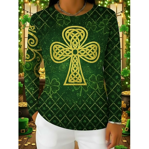 Festa di San Patrizio Per donna Maglietta Grafico Trifoglio Moda Classico Casual Manica Lunga Girocollo Top Regolari Quotidiano Weekend Abbigliamento da vacanza Stampato Verde chiaro Verde scuro Verde