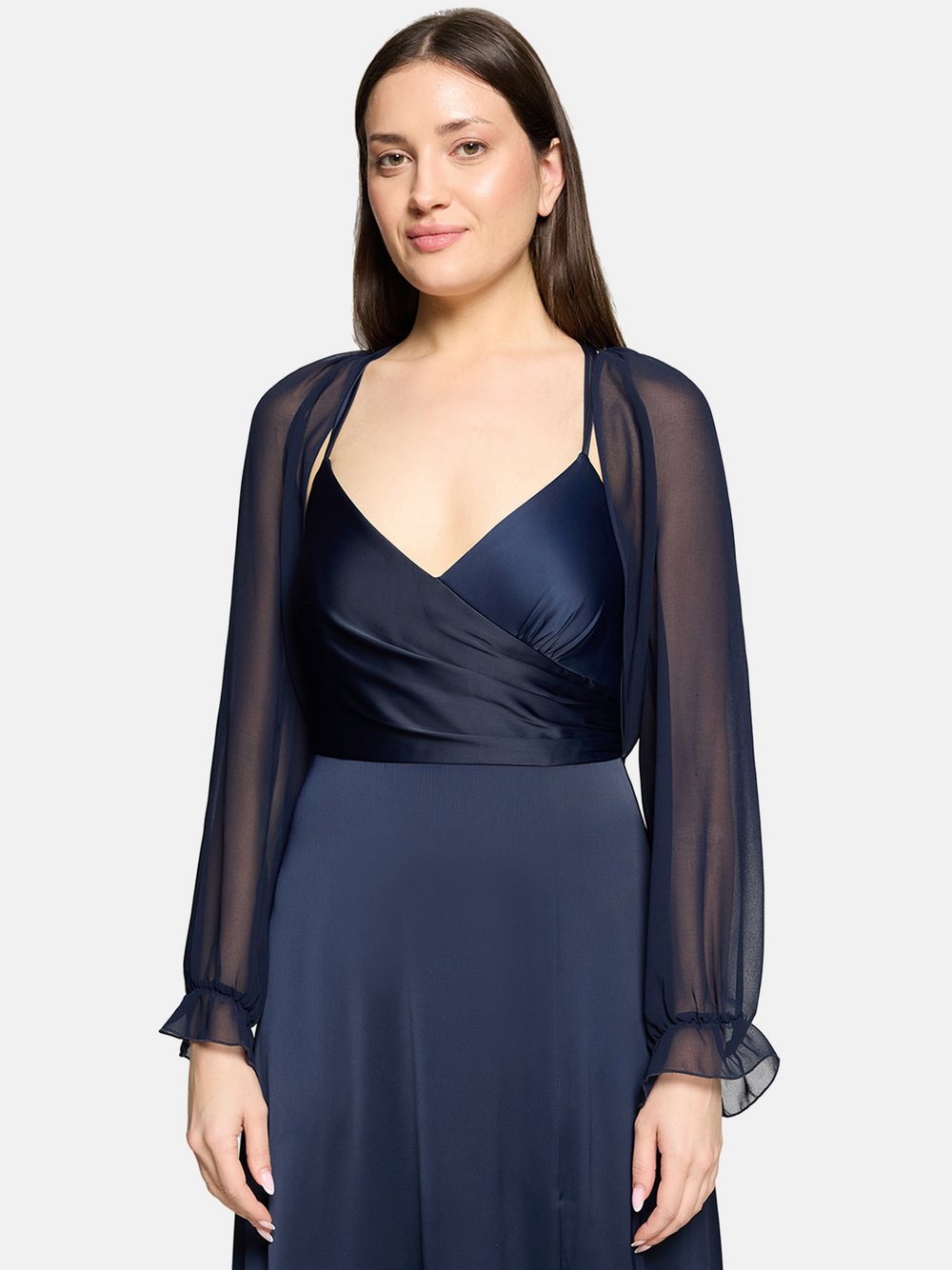Sommerkleid VERA MONT "Vera Mont Sommerkleid mit Kellerfalten", Damen, Gr. 42, Normalgrößen, blau (patch dunkelblau, dunkelblau), Obermaterial: 75% Baumwolle, 22% Polyamid, 3% Elasthan., modisch, tailliert kurz, Rundhals, Halbarm, Kleider, Materialmix