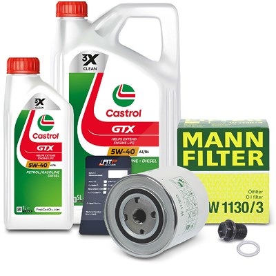 Mann-filter Ölfilter+Schraube+6 L Castrol GTX High 5W-40 A3/B4 [Hersteller-Nr. 10492226] für Volvo
