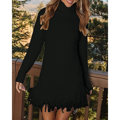 Per donna Mini Abito Abito in maglia Moda Moderno Quotidiano Ferie Uscire Vestibilità regolare Semplice Manica Lunga Dolcevita Nero Bianco Cachi Albicocca Primavera Autunno