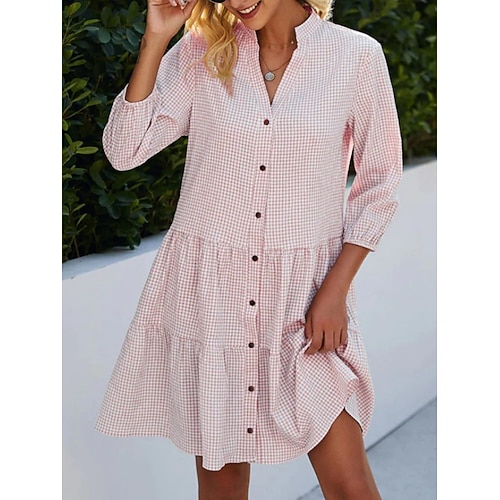 Per donna Mini Abito Abito a trapezio Casual Quotidiano Vestibilità comoda Plaid Manica 3/4 Scollo a V Blu Rosa Estate Primavera