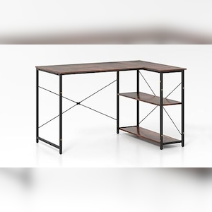 Aosom Hjørnebord Vinkelbord Pc-Bord Computerbord Kontorbord Hylde Skuffe L-Formet Spånplade Metal Rustik Brun 135 X 90 X 79 Cm