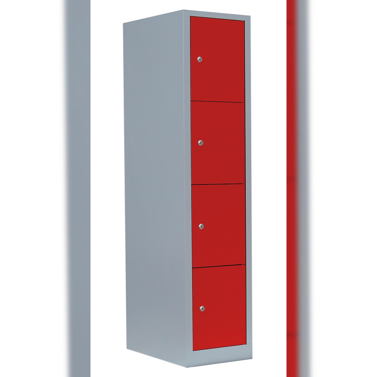 Lüllmann® Schließfachschrank, 1 Abteil, 4 Fächer, 1800 x 415 x 500 mm, lichtgrau/feuerrot