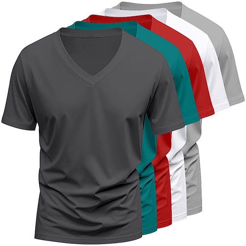 Maglietta da uomo a maniche corte, 5 pezzi, con scollo a V, estiva, per tutte le stagioni, tinta unita, basic, casual, confezione multipla da 5 pezzi, per le vacanze, da strada, casual, bianca, per