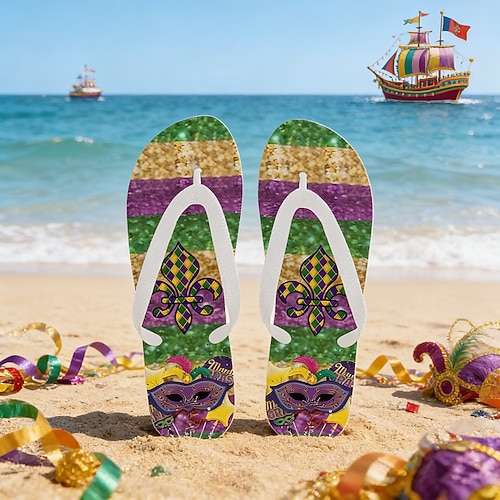 infradito da uomo con stampa di giglio di Mardi Gras - sandali da spiaggia leggeri e comodi per festeggiamenti di carnevale, gite in spiaggia, relax a bordo piscina e gite estive informali