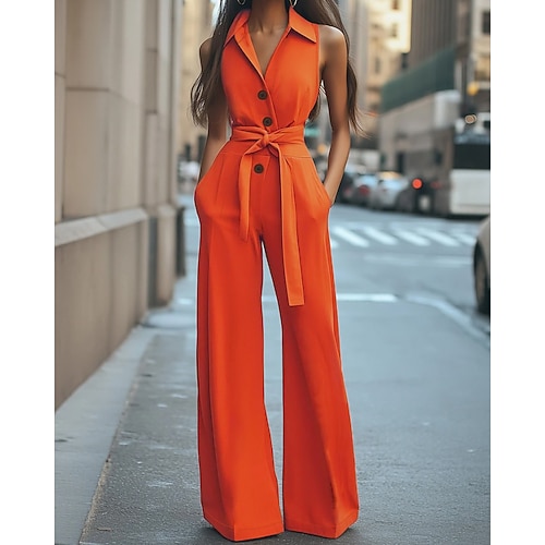 Per donna Normale Tuta Attivo Tinta unica Senza Maniche Gamba larga Colletto a Camicia Coulisse Vita alta Quotidiano Vacanza Vestibilità regolare Arancione Estate