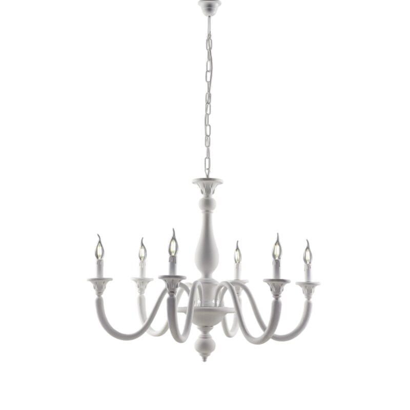 Bonetti Illumina Lucca - Schäbiger weißer Holzkronleuchter 6 Lichter 129 - Ø86 - BL271-6-BCO