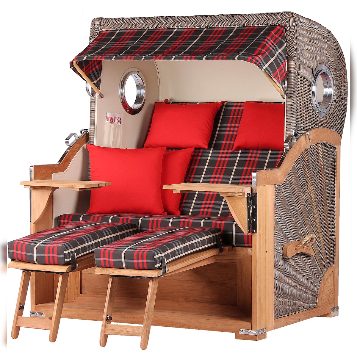 Mr. Deko Strandkorb - bene living - Königssee Teak Bullauge - PE grau - Modell 529 - inkl. Liftersystem