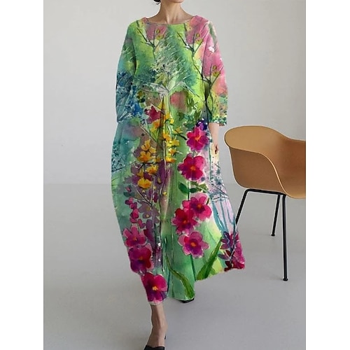 Per donna Abito maxi Abito a trapezio Abito aderente e svasato Festa Casual Boho Feste Ospite di nozze Quotidiano Vestibilità comoda Floreale Grafico Manica Lunga Girocollo Rosa Rosso Verde Primavera