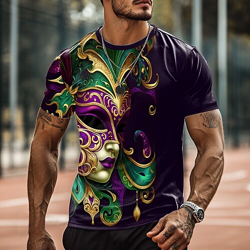Martedì grasso Per uomo Maschera Maglietta Manica Corta maglietta Stampa 3D Girocollo Camicia Designer Casual Feste Ferie Club Viola Estate Primavera Abbigliamento S M L XL XXL XXXL
