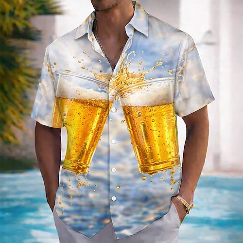 Per uomo Birra Bere bevanda Camicia hawaiana estiva Camicia con Bottoni Camicia Aloha Manica Corta Hawaiano Vacanza Abbigliamento mare Estate Primavera Collo ripiegato Stampa 3D camicie con colletto