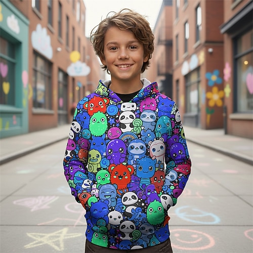 Unisex Ragazzi 3D Grafico Animale Cartoni animati Felpa con Cappuccio Maglione Manica Lunga Stampa 3D Primavera Autunno Sport Moda Streetwear Bambini 4-12 Anni Con cappuccio All'aperto Casuale
