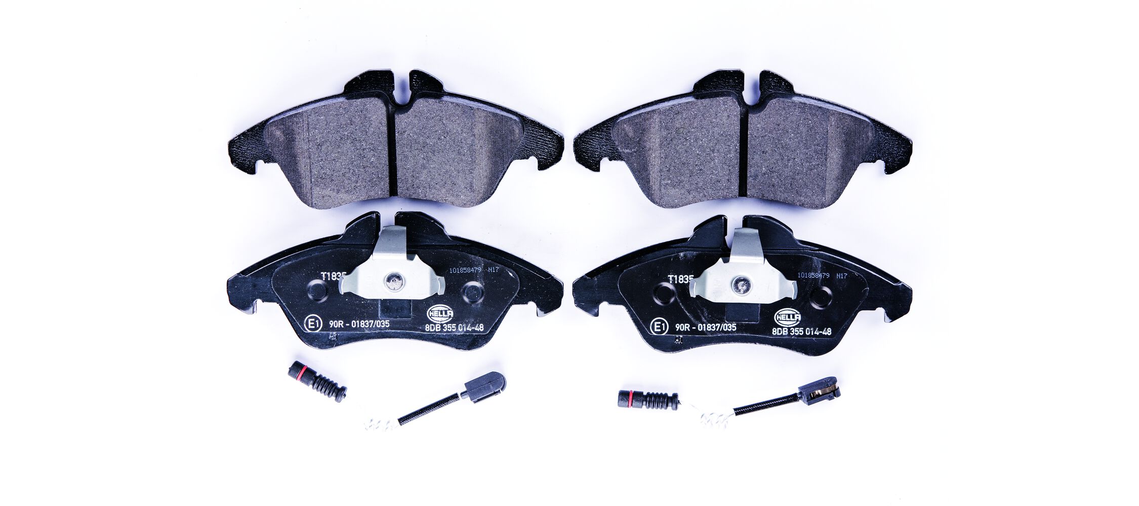 HELLA Bremsbelagsatz, Scheibenbremse 8DB 355 014-481 vorne rechts links mit Zubehör für SKODA VW SEAT AUDI MERCEDES-BENZ 2D0698151 A9014210410 A901421
