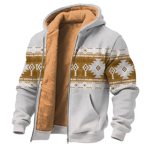 Per uomo Tribale Pile Felpa con Cappuccio Felpa Moda Quotidiano Semplice Etnico Manica Lunga Girocollo All'aperto Arrampicata Giallo Rosso Blu Verde Con zip Autunno Inverno progettista S M L XL 2XL