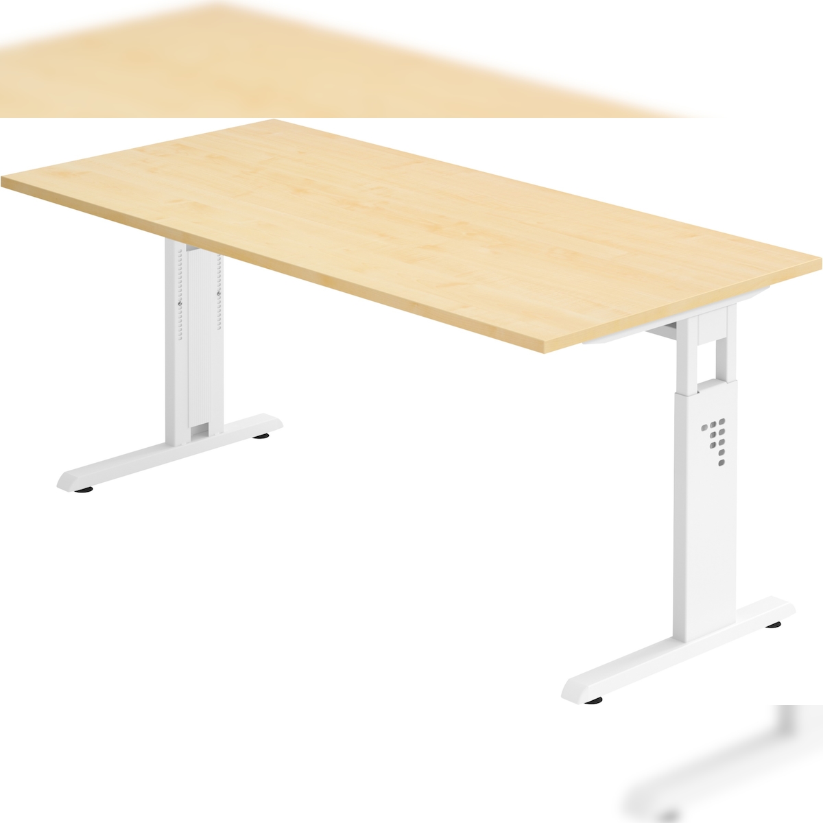 bümö höhenverstellbarer Schreibtisch O-Serie 160x80 cm in Ahorn, Gestell in weiß - PC Tisch für's Büro manuell höhenverstellbar, Computertisch