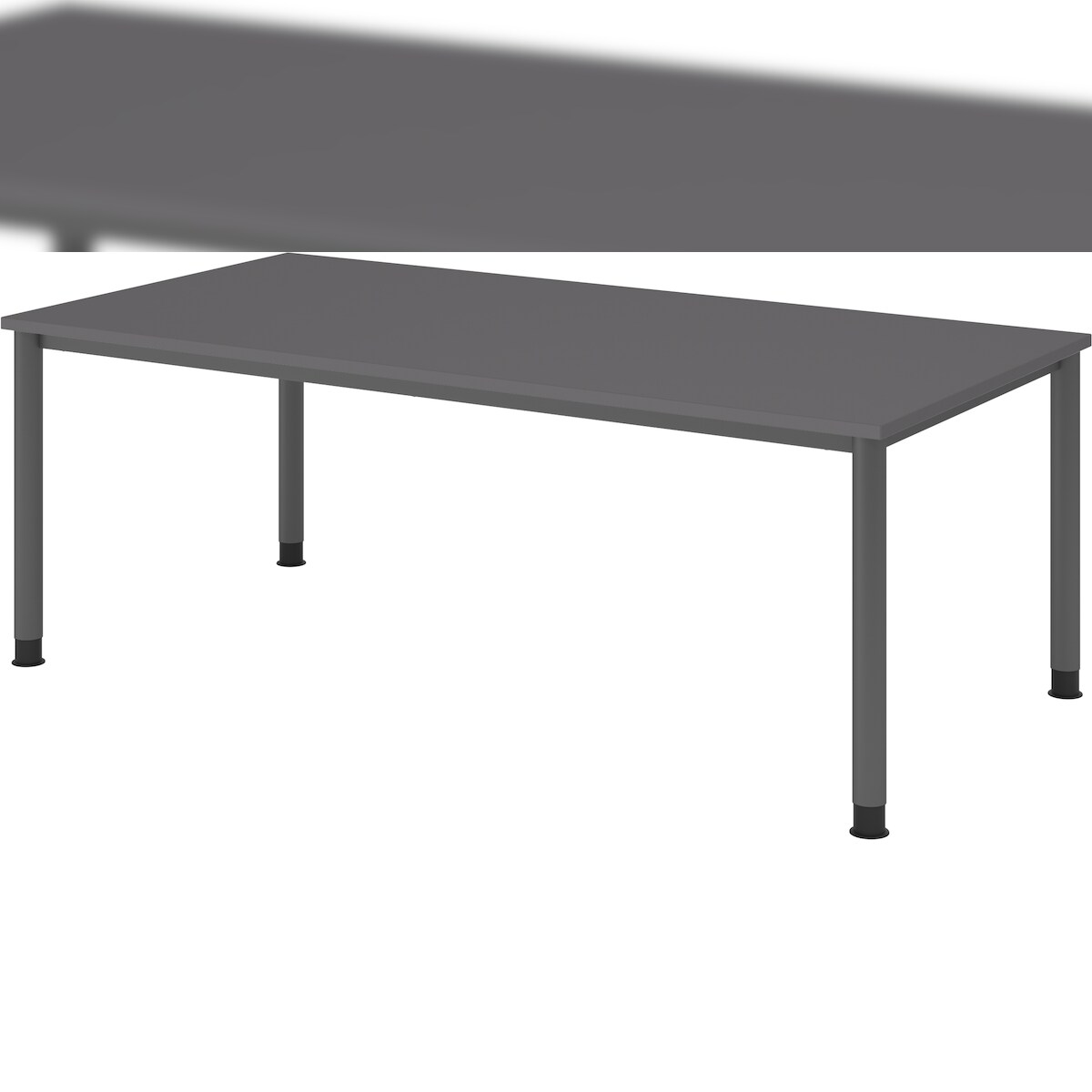 bümö höhenverstellbarer Schreibtisch H-Serie 200x100 cm in graphit, Gestell in Graphit - PC Tisch für's Büro manuell höhenverstellbar, Computertisch