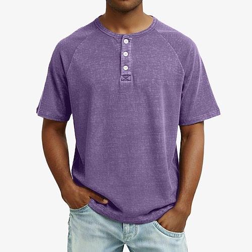 Da uomo Maglia Henley Maglietta Manica Corta Henley Estate Primavera Tutte le stagioni Tinta unica Moda Designer Casual Bottoni Minimalista Manica corta Casuale Quotidiano All'aperto Blu chiaro Nero