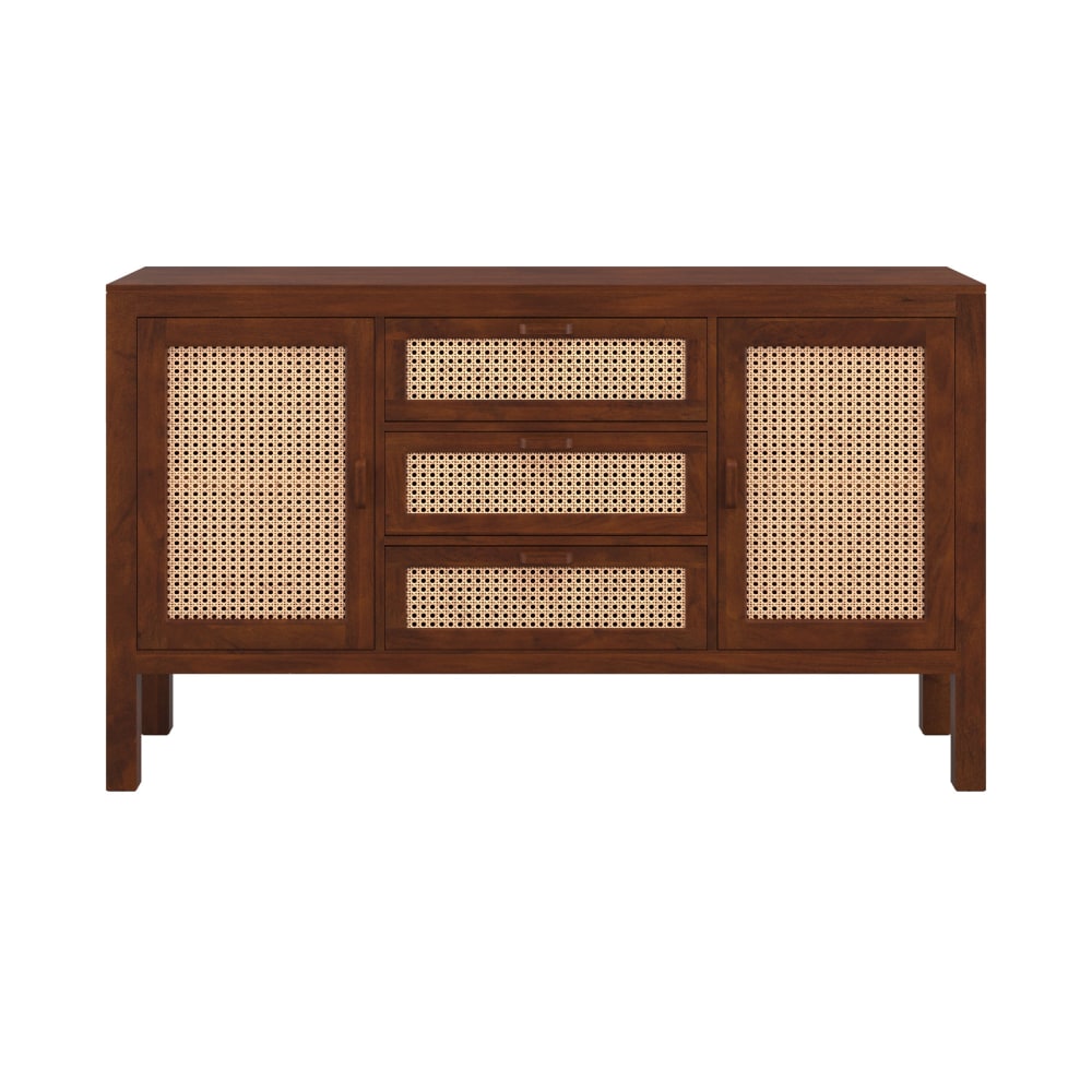 Consolle in legno chiaro con motivi geometrici dorati