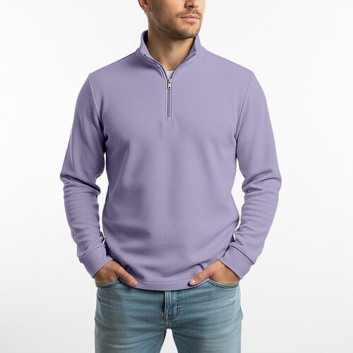 Per uomo Magliette Polo a Nido d'Ape Polo con zip a un quarto All'aperto Casual Zip a un quarto Manica Lunga Moda Moderno Tinta unica Lavorato a maglia Primavera Primavera Autunno Vestibilità comoda