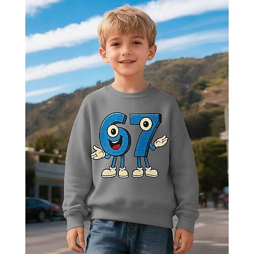 Unisex Ragazzi 3D Grafico Gergo divertente 67 Felpa Maglione Manica Lunga Stampa 3D Primavera Autunno Attivo Moda Streetwear Bambini 4-12 Anni Girocollo Casuale Quotidiano All'aperto Vestibilit