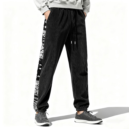 Per uomo Pantaloni da tuta Pantaloni in velluto a coste Pantaloni Larghi Pantaloni casual Coulisse Striscia laterale Tinta unica Comodità Lunghezza intera All'aperto Casuale Quotidiano Vacanza Moda