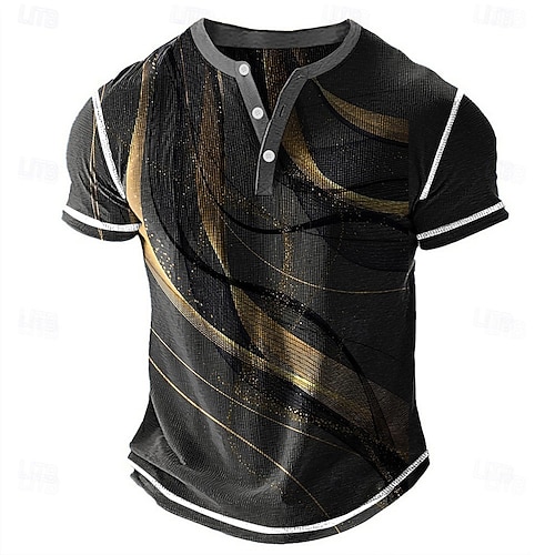 Per uomo Ombre Grafico Sfumatura Maglia Henley Manica Corta Moda Designer Casual Quotidiano All'aperto Estate Primavera Autunno Tutte le stagioni Verde chiaro Blu scuro Blu chiaro Henley Maglietta