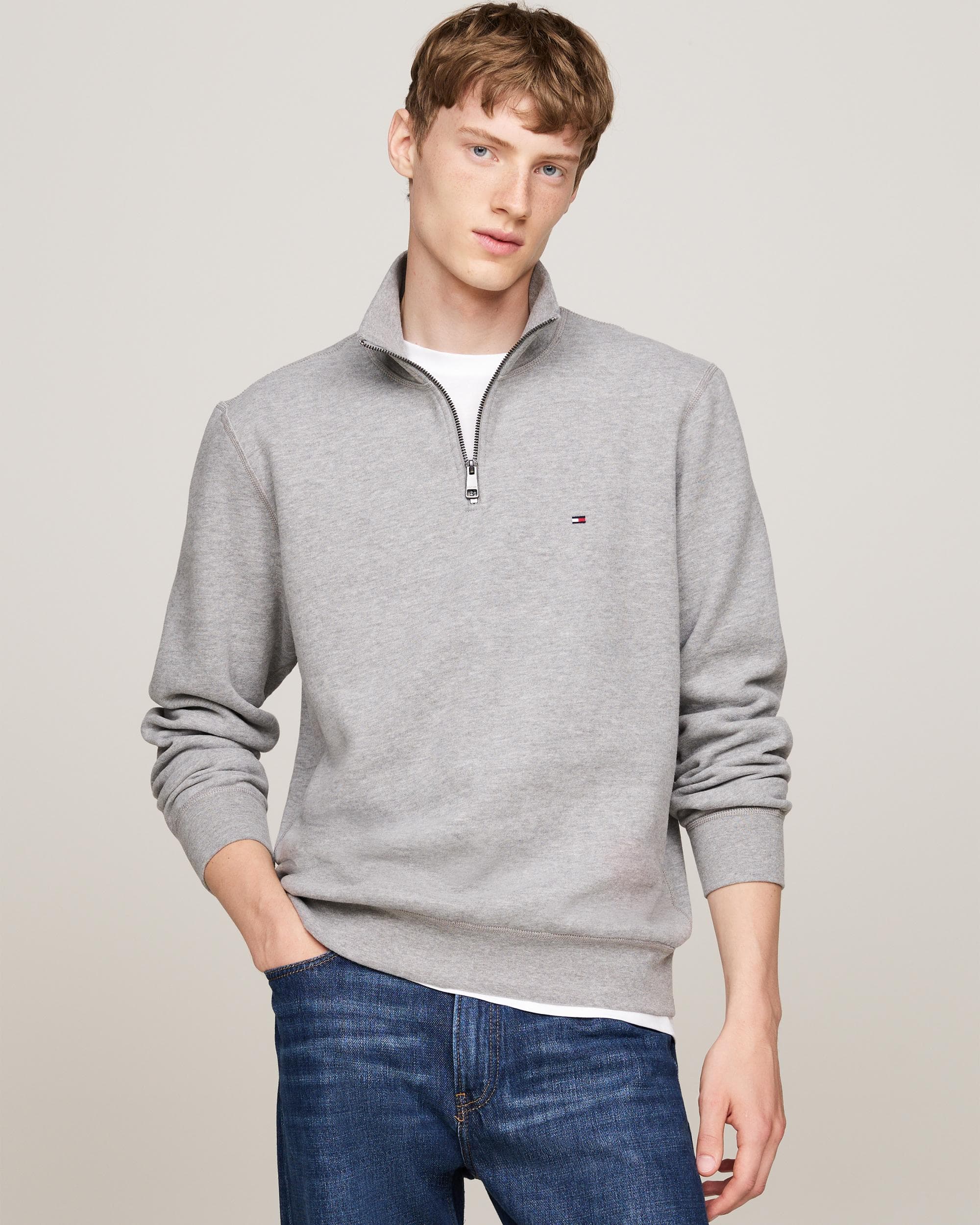 Tommy Hilfiger Essential Fleece Mens Half Zip Sweatshirt - Grey - Size X-large | Tommy Hilfiger Sale | Discount Designer Brands