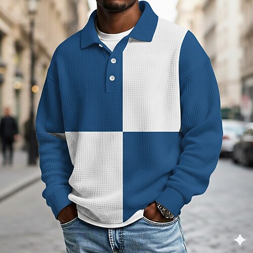 Per uomo Blocco di colori Polo Polo da rugby Testurizzato Manica Lunga Magliette polo Bavero Abbigliamento Sportivo Casual Scuola Athleisure Abbigliamento quotidiano Stampa 3D Primavera Autunno