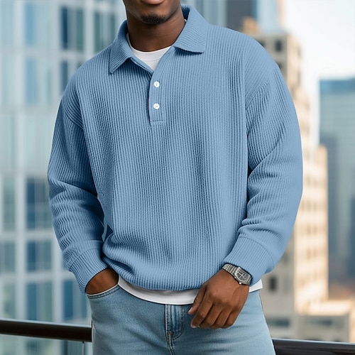 Per uomo Polo con bottoni Testurizzato Casuale Ferie Classico Manica Lunga Moda Essenziale Blocco di colori Asciugatura Rapida Estate Primavera Vestibilità regolare Nero Blu marino scuro Kaki Grigio