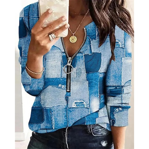 Per donna Felpa Pullover Felpe con cerniera Grafico Blocco di colori Semplice Elegante Caldo Attivo Manica Lunga Mezza zip Top Regolari Casa Lavoro Streetwear Patchwork Stampato Zip a un quarto Blu