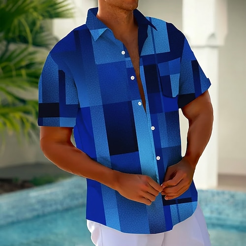 Per uomo Blocco di colori Patchwork Colore sfumato Camicia Camicia Estiva Camicia con Bottoni Manica Corta Moda Casual All'aperto Vacanza Abbigliamento Quotidiano Estate Primavera Collo ripiegato