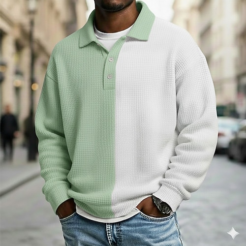 Per uomo Maglia da golf Polo da Golf Lavoro Casuale Bavero Manica Lunga Essenziale Moderno Blocco di colori Patchwork Bottoni Primavera Autunno Vestibilità regolare Verde scuro Nero Bianco Verde