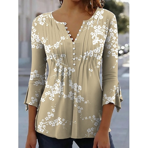 Per donna Maglietta Floreale Grafico Elegante Casual Manica 3/4 Scollo a V Top Regolari Quotidiano Stampato Rosa Blu Viola Beige Estate
