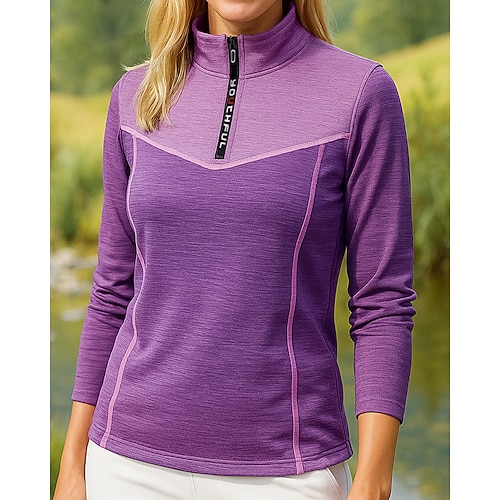 Per donna Felpa con zip corta Manica Lunga Collo alla coreana Top Esterno Calore Termico Inverno Poliestere Patchwork Rosa Viola scuro Viola chiaro Tennis Golf Corsa