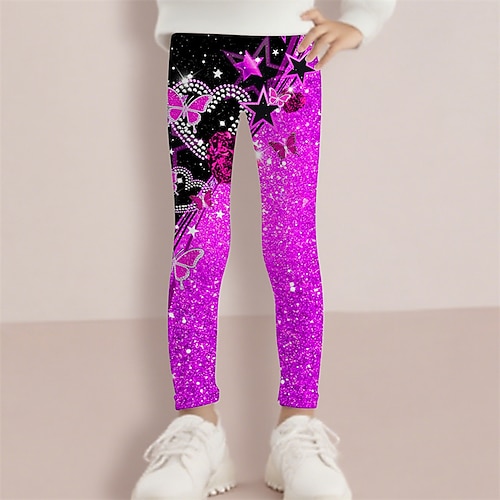 Ragazze 3D Farfalla Stella Pantaloni Leggings Primavera Autunno Carino Essenziale Bambini 4-12 Anni All'aperto Casuale Quotidiano Vestibilità regolare