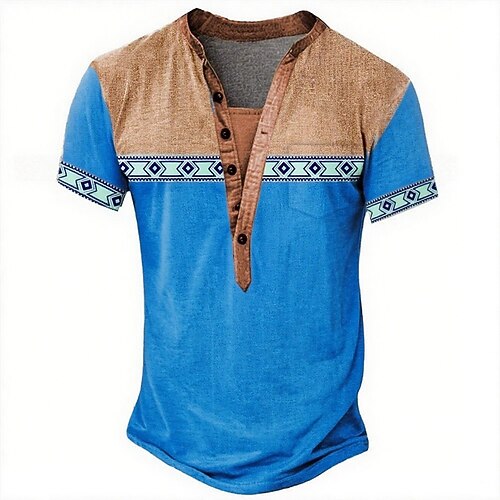 Per uomo Tribale Etnico Maglietta Maglia Henley Manica Corta Designer Essenziale Etnico All'aperto Casuale Quotidiano Estate Verde chiaro Blu chiaro Henley Maglietta Henley