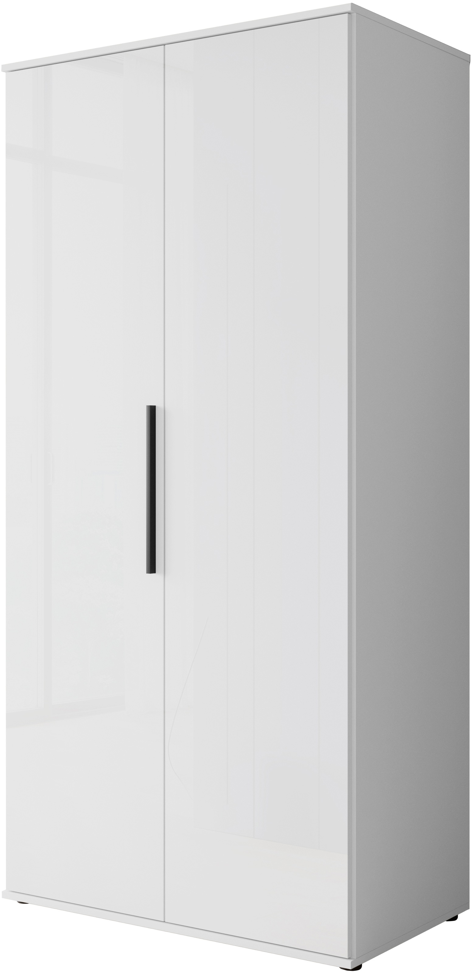 Kleiderschrank INOSIGN "LAGOS Wäscheschrank, Garderobe, schwarze Griffe, Made in Europe", weiß (weiß matt, weiß hg), B:90,1cm H:187,3cm T:51cm, FSC-zertifizierter Holzwerkstoff, Schränke, Moderner Drehtürenschrank, FSC-zertifiziert, Schlafzimmerschrank
