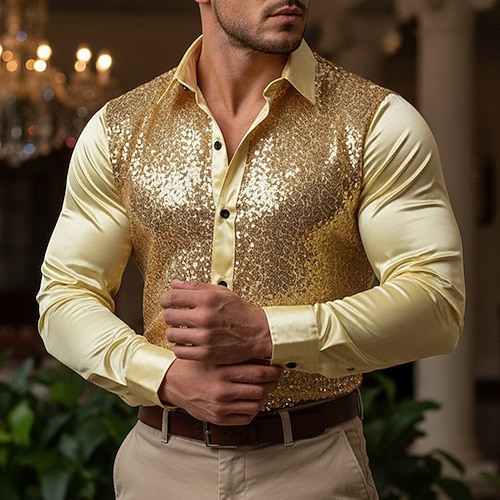 Per uomo Camicia da ballo Camicia da discoteca Camicia in raso di seta Camicie da smoking Tinta unica Matrimonio Feste Nero Bianco Rosso Blu Manica lunga Collo ripiegabile Estate Primavera