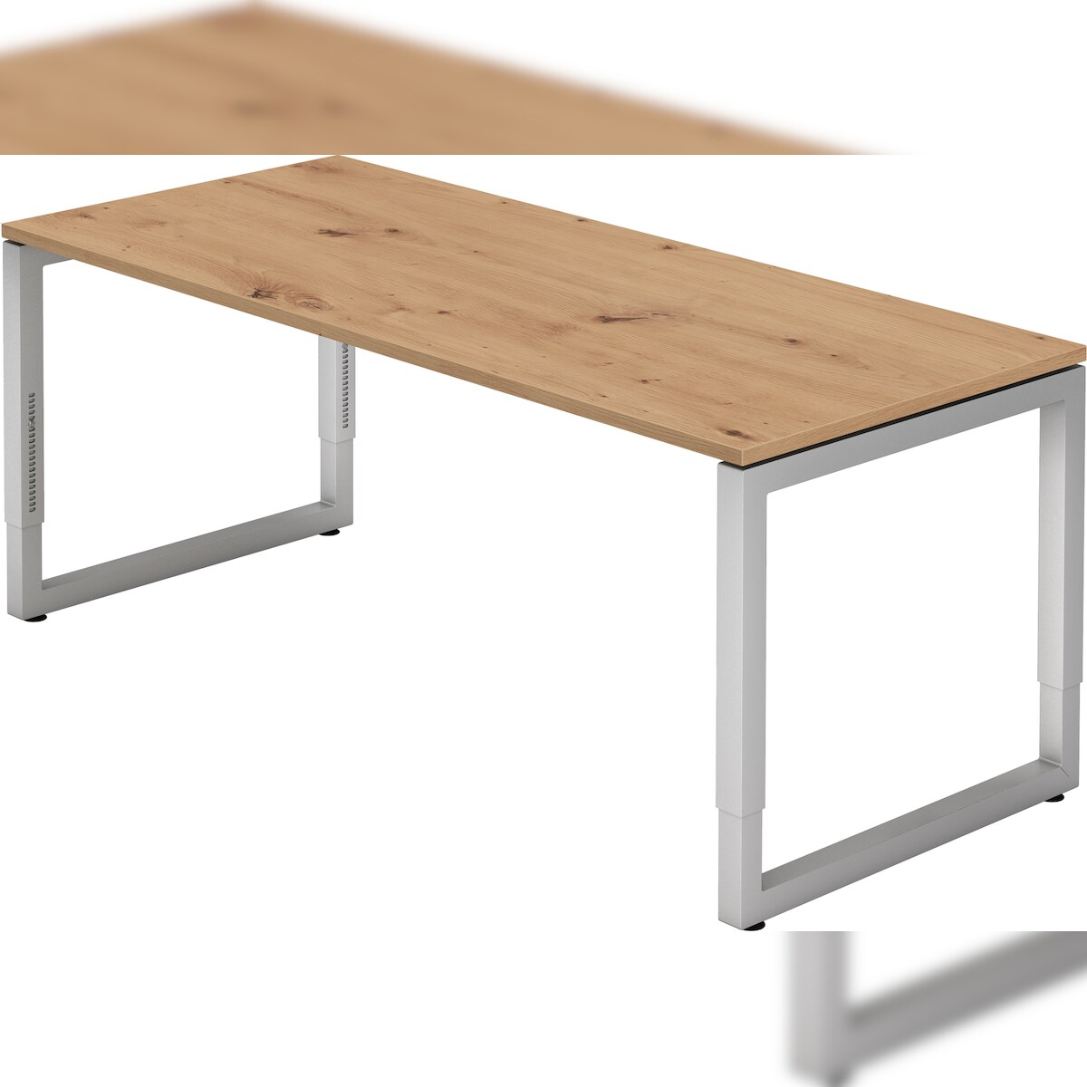 bümö höhenverstellbarer Schreibtisch R-Serie 180x80 cm in Asteiche, Gestell in Silber - großer PC Tisch für's Büro manuell höhenverstellbar,