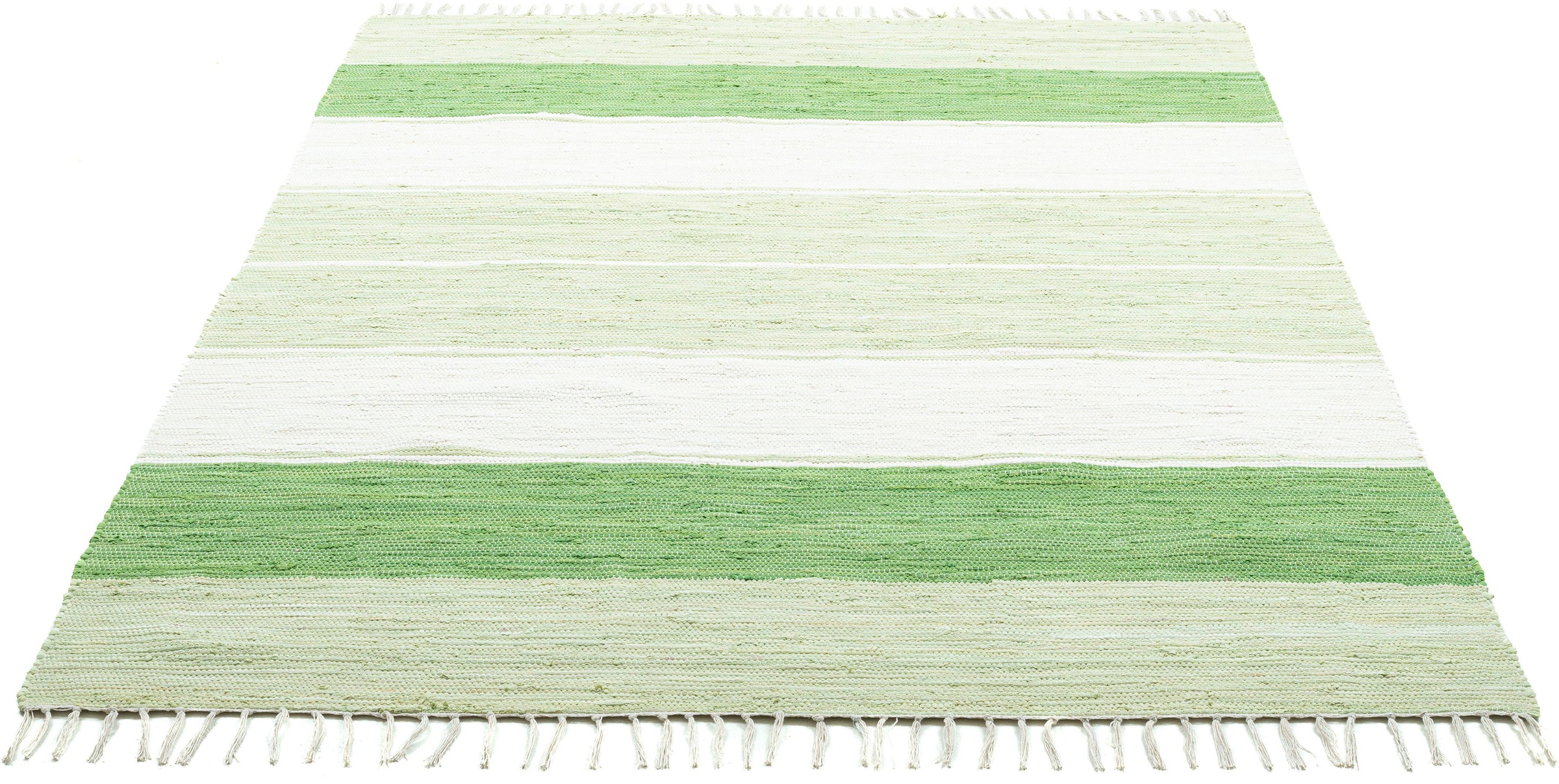 Teppich THEKO "Stripe Cotton" Gr. 4, grün, B:160cm H:5mm L:230cm, Baumwolle, Teppiche, Fransenteppich, Flachgewebe, gestreift, reine Baumwolle, handgewebt, mit Fransen