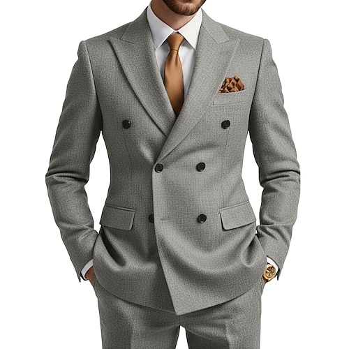 Uomo Matrimonio Affari Completi in Tweed Bavero a lancia Nero Borgogna Quotidiano Formale Tinta unita Vestibilità su misura 2 pezzi Doppiopetto a sei bottoni