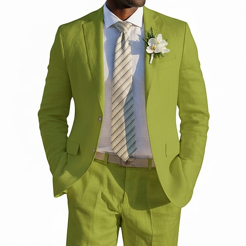 Uomo Casuale Matrimonio in Spiaggia Completi in Lino Bavero classico Nero Bianco Moda Leggero Tinta unita Vestibilità su misura 2 pezzi Monopetto Due Bottoni