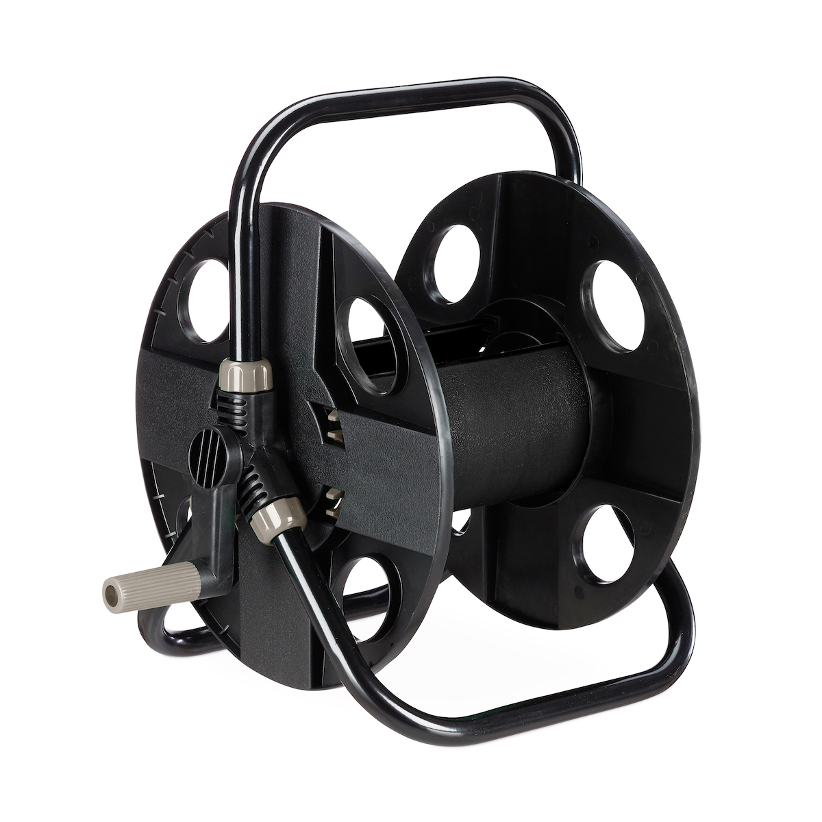 Relaxdays Schlauchtrommel, für 30 m 1/2" Schlauch, Stahl, Kunststoff, Schlauchhalter, HBT: 38 x 42 x 31 cm, schwarz-grau