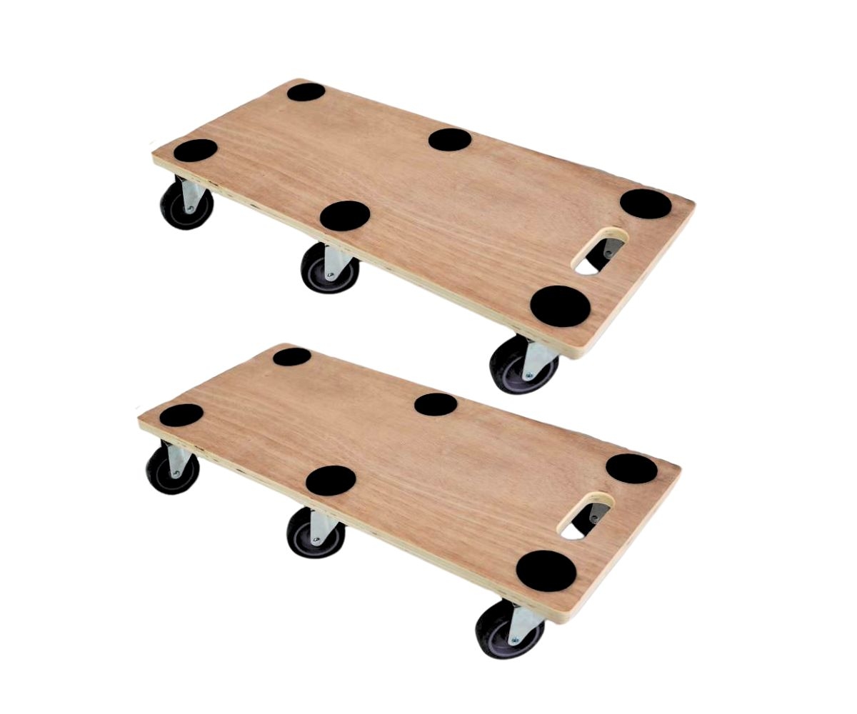 PROREGAL Mega Deal 2x Profi Transportroller mit 6 Rollen | HxBxT 11x30x68cm | Traglast 300kg | Sperrholzplatte | Braun | Möbelroller Rollbrett