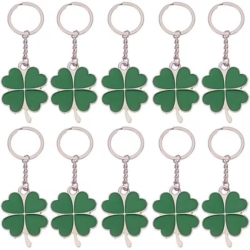 10 portachiavi a forma di trifoglio portafortuna per San Patrizio, portachiavi in acciaio inossidabile a forma di trifoglio verde, stili assortiti, perfetti come bomboniere per le feste regali
