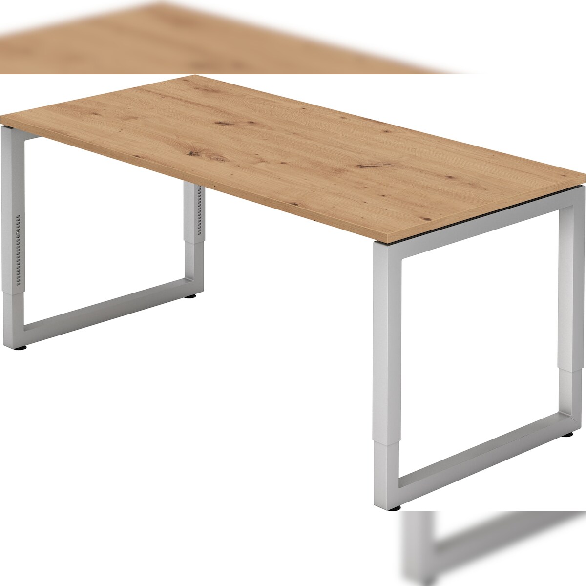 bümö höhenverstellbarer Schreibtisch R-Serie 160x80 cm in Asteiche, Gestell in Silber - PC Tisch für's Büro manuell höhenverstellbar, Computertisch