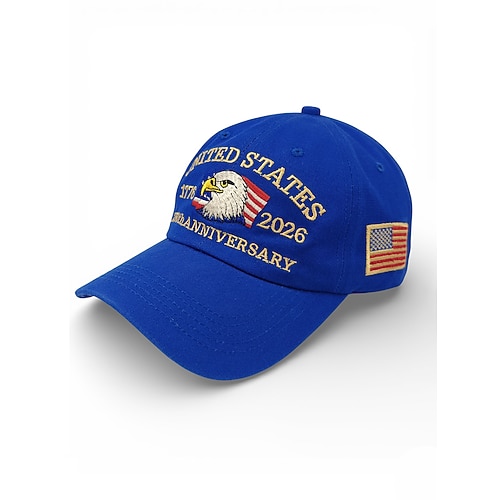 berretto da uomo regolabile in cotone con bandiera americana ricamata, vari colori, ideale per le celebrazioni del giorno dell'indipendenza e del 250° anniversario