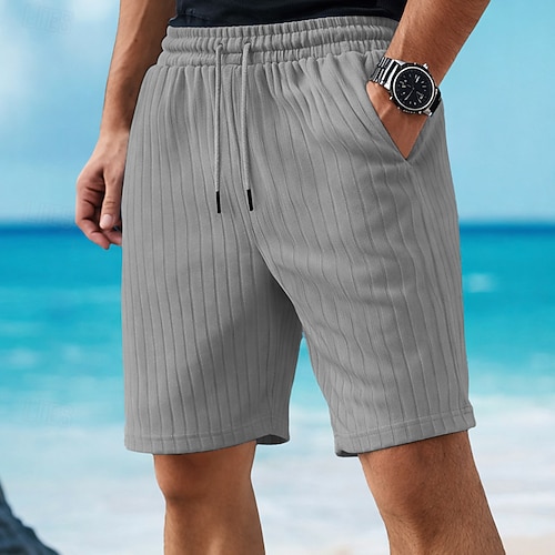 Per uomo Pantaloncini Estivi Shorts da Spiaggia Pantaloncini casual Maglia a trecce Pantaloncini strutturati Coulisse Elastico in vita Tinta unica Comodità Lunghezza al ginocchio Quotidiano