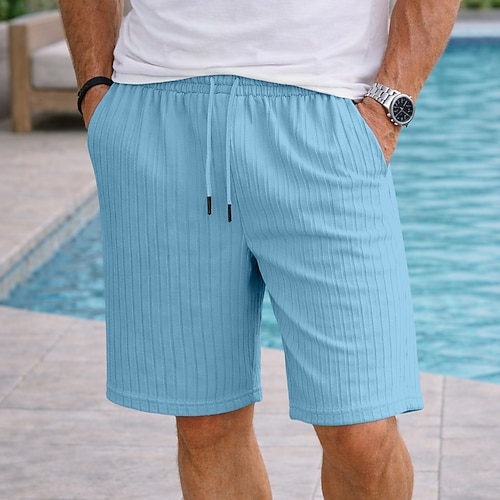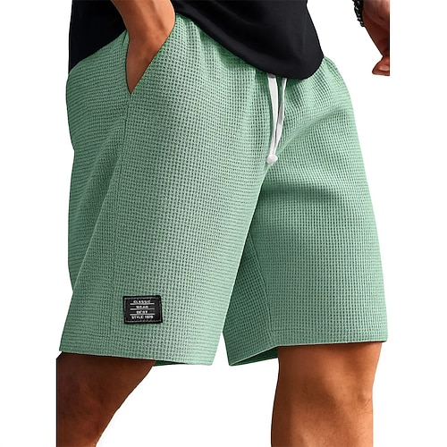 Per uomo Pantaloncini Waffle Pantaloncini Estivi Shorts da Spiaggia Pantaloncini casual Coulisse Elastico in vita Tinta unica Comodità Lunghezza al ginocchio Quotidiano All'aperto Abbigliamento
