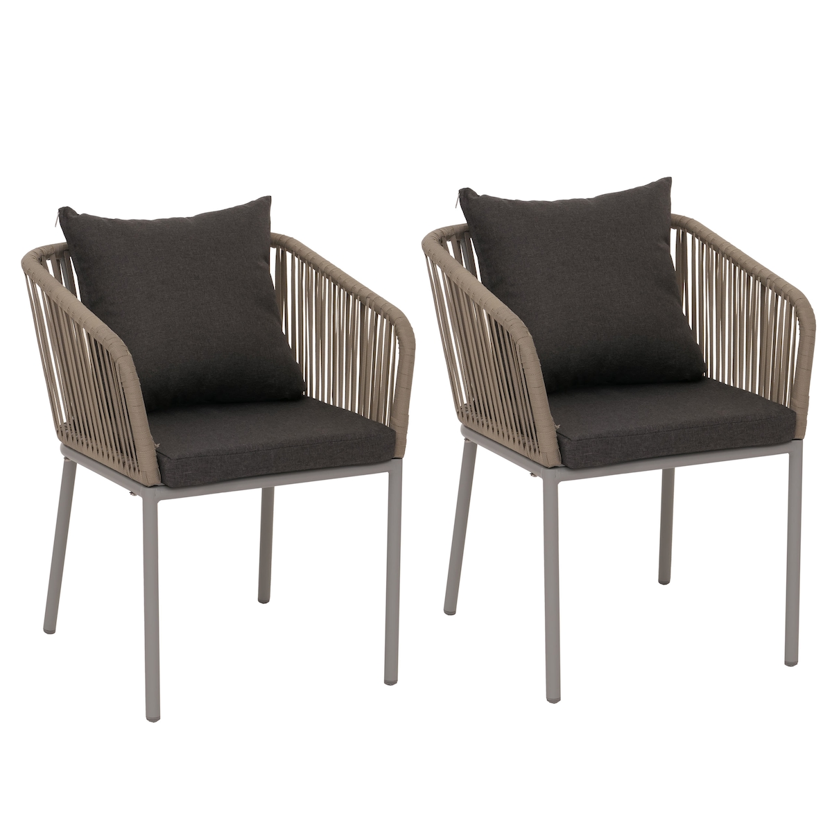 Mendler 2er-Set Gartenstuhl HWC-N41, Outdoor Armlehne, wetterfest Aluminium Seilgeflecht Rope ~ grau, Kissen dunkelgrau